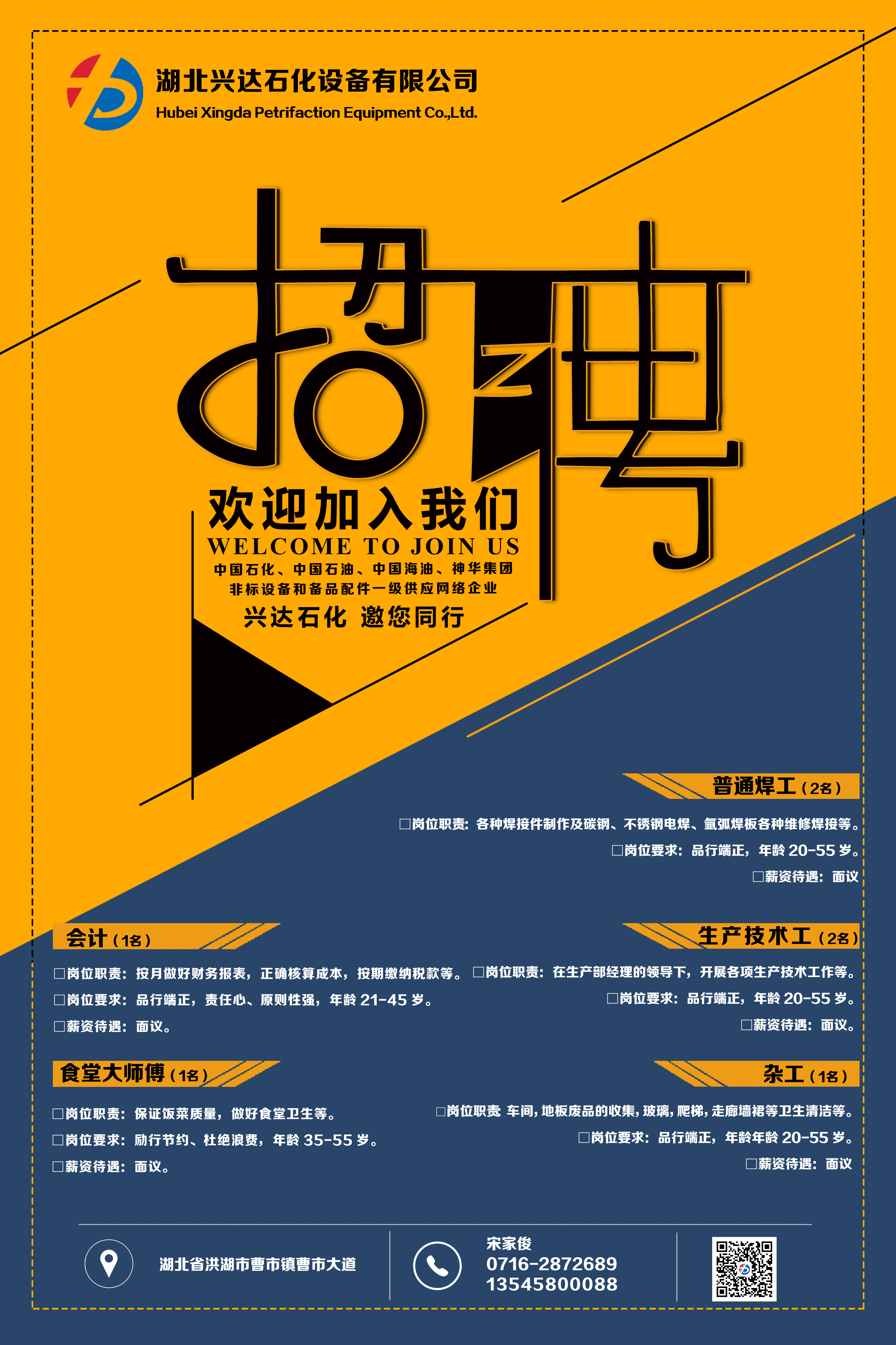 普通焊工、生产技术工、会计、杂工、食堂大师傅。